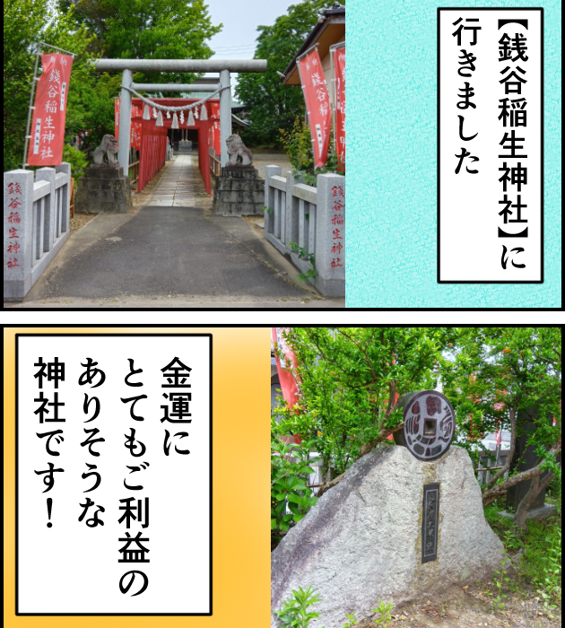銭谷稲生神社は通貨を鋳造していた跡地だそうです。とても金運が良くなりそうな神社です。