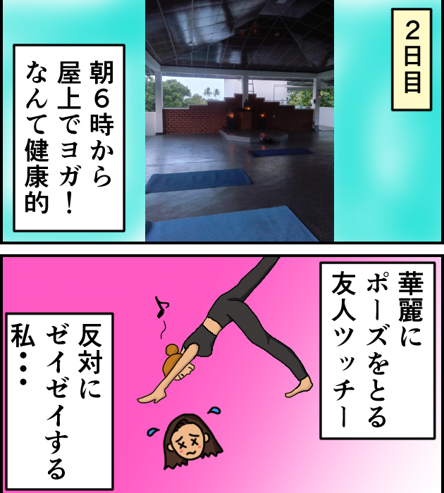希望者だけ気軽に参加できる朝ヨガクラスです。解放された空間でのヨガは、とても気持ち良かったですが、なかなかハードでした・・・